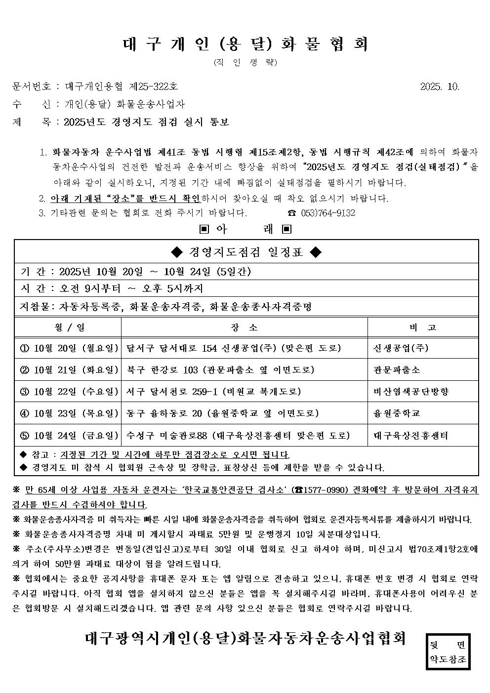 2025년도 경영지도 점검 (실태점검) 일정안내
