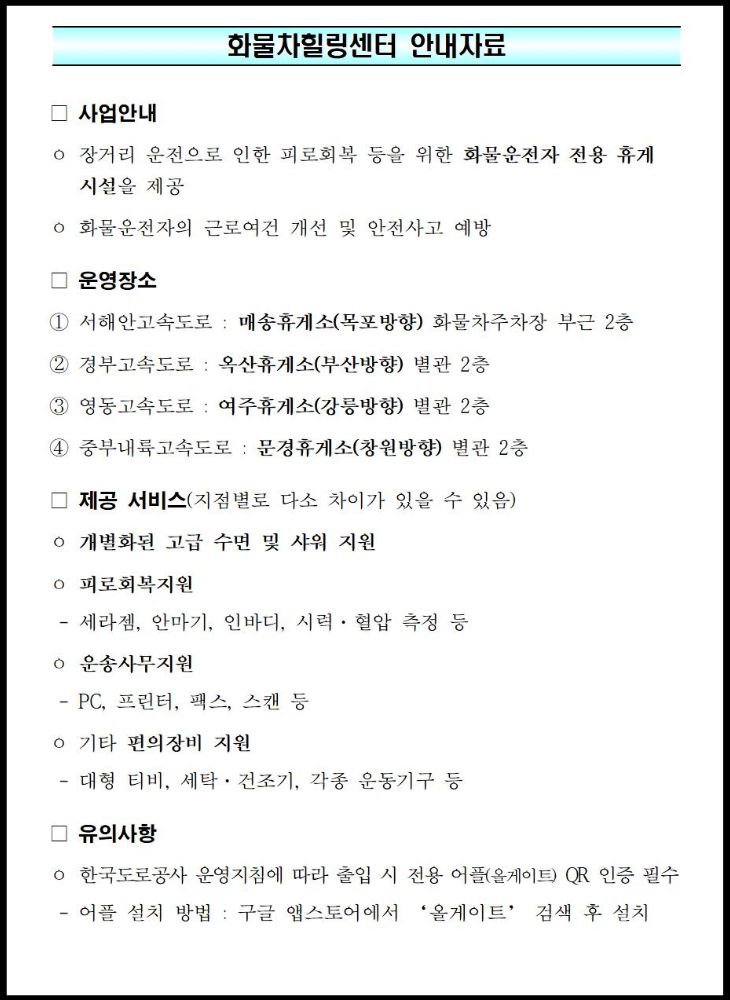 · 공지] (화물복지재단)화물차힐링센터 확대 운영 알림