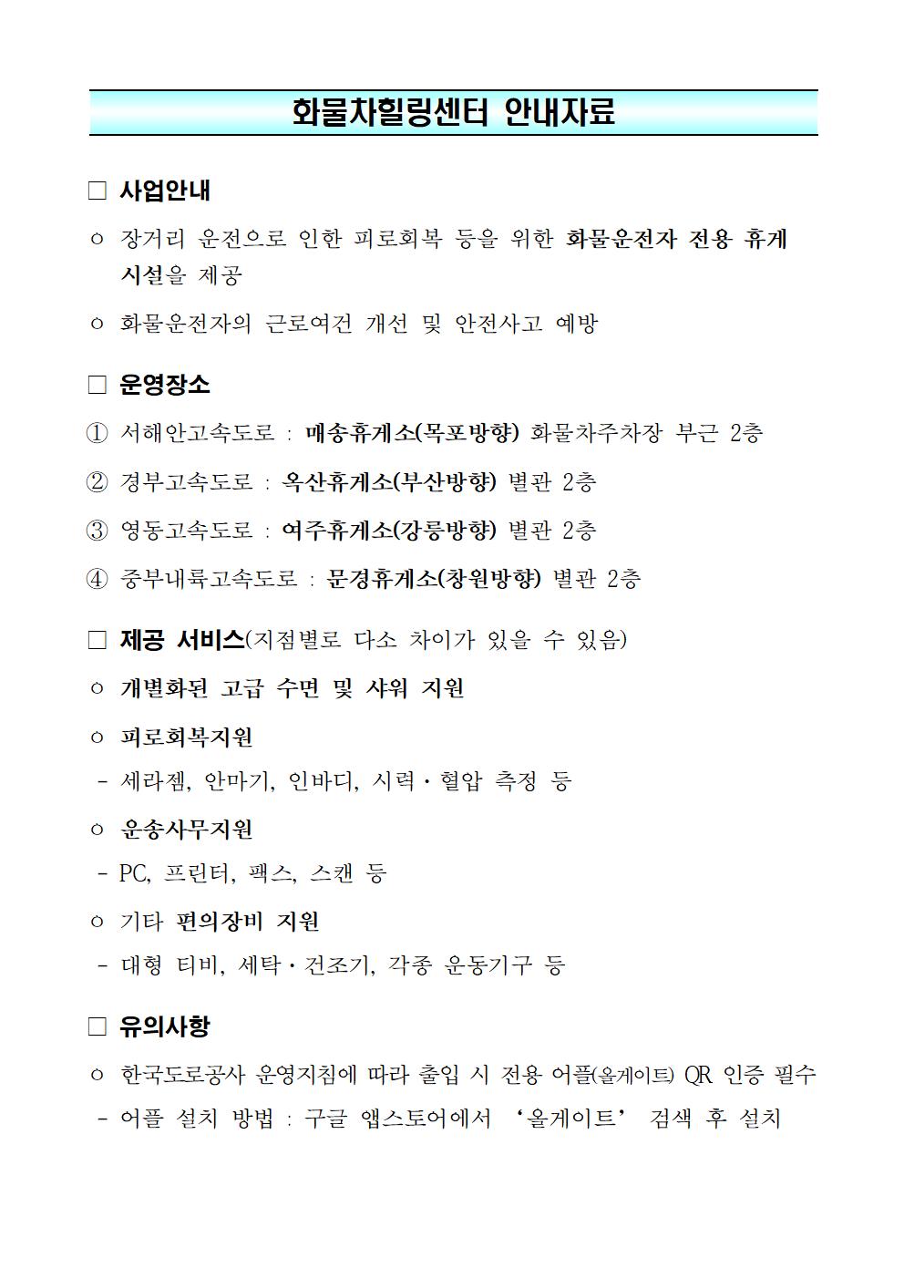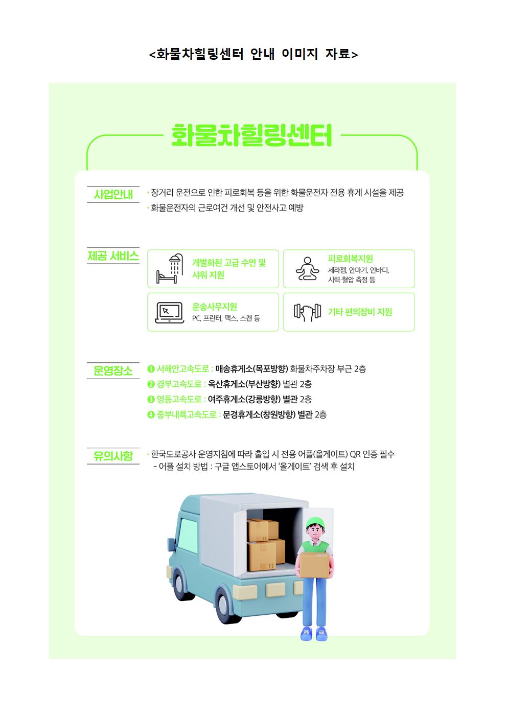 공지] (화물복지재단)화물차힐링센터 확대 운영 알림