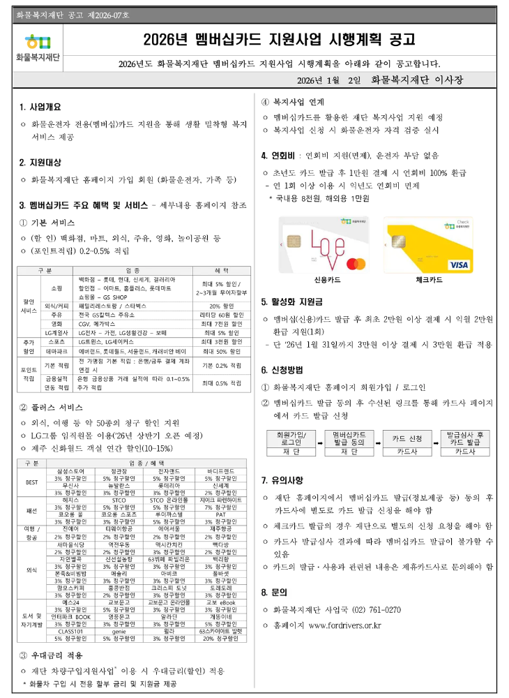 2026년 화물복지재단 멤버십카드 지원사업 시행계획 공고